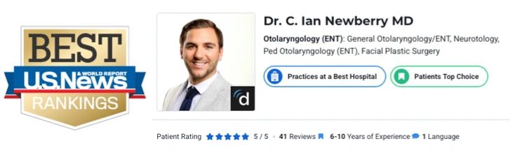 Dr. C. Ian Newberry is a leading provider of specialized otolaryngology-head and neck surgery services. With extensive training in otology (ear surgery), cochlear implants, functional rhinoplasty, complex pediatric cases, and head and neck cancers, the team is dedicated to delivering the highest quality care to patients of all ages. Backed by top 20 nationally ranked otolaryngology residency and advanced fellowship training, we offer a comprehensive range of treatments to address a wide variety of ear, nose, and throat conditions.